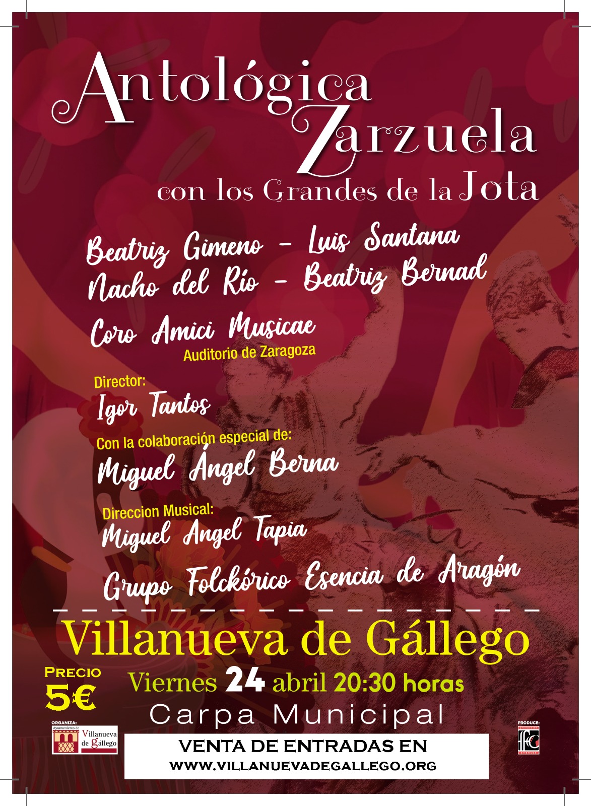 Antologica Zarzuela Antológica Zarzuela Entradas aquí. + Añadir Google Calendar Exportación + iCal / Outlook 00 días 00 horas 00 minutos 00 segundos BuscarBuscarRecent PostsXIX FESTIVAL TAPAS Y DANZA . DOMINGO 26 DE ABRIL ESPECTACULO»ANTOLÓGICA ZARZUELA CON LOS GRANDES DE LA JOTA» VIERNES 24 DE ABRIL A LAS 20.30H. EN LA CARPA MUNICIPAL CELEBRACION DE SAN JORGE 2026 . 23 DE ABRIL PARQUE CORTES DE ARAGÓN CONCIERTO PARA PÚBLICO FAMILIAR «KIDS WANNA ROCK» TRIBUTO A QUEEN . DOMINGO 12 DE ABRIL A LAS 18 H. EN LA SALA CAPITOL. MONOLÓGO DE AGUSTÍN JIMÉNEZ ¿QUIÉN SOY YO? . SÁBADO 11 DE ABRIL A LAS 20 HORAS EN LA CARPA MUNICIPAL. Recent CommentsNo hay comentarios que mostrar.